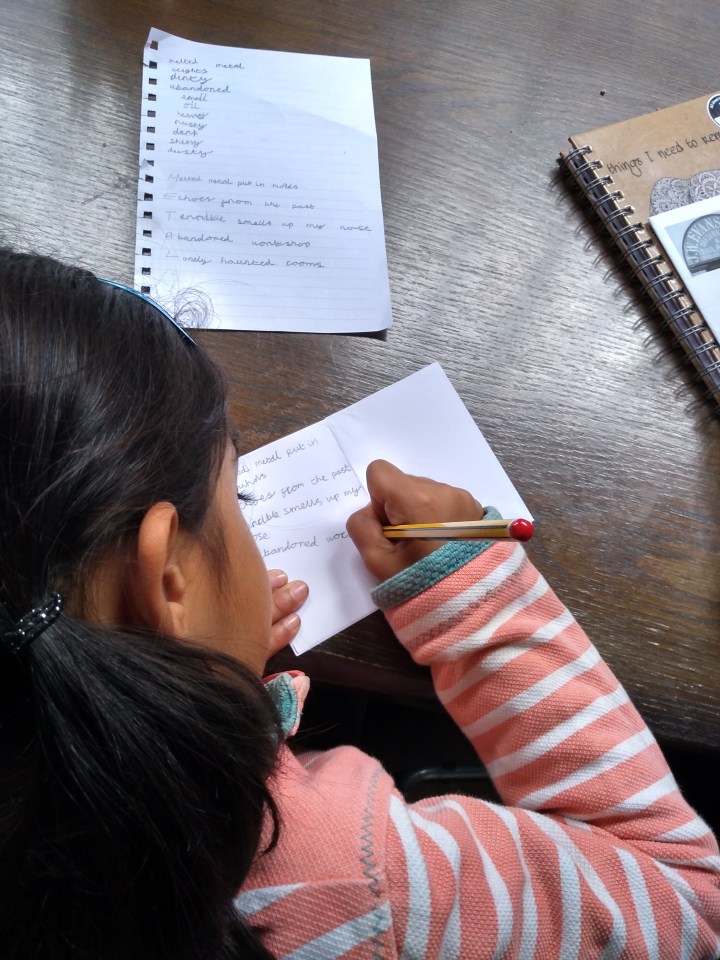 Afterwards I asked the children to each tell me what they’d seen/smelt/felt and thought about the silver factory. I wrote it all down in their words, then edited it (with one bit of my head) while they made tiny books for their own poems (which I helped with using another bit of head). Here’s some tiny books: