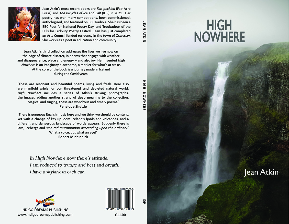 I am so happy to see this book make it into print. It’s been three years plus in the making, so I was putting it together during Covid too. High Nowhere is about weather, and creatures, and place. It’s about how we live on the edge of climate disaster – and through pandemics. I invented ‘High Nowhere’ as an imaginary placename, a marker for what’s at stake. (I was plodding up a steep hill in the Welsh Marches when this thought came to me). And at the core of the book is a journey I made in Iceland during the Covid years. Also there are my black and white photographs throughout. Sometimes they relate quite evidently to the poems. Sometimes they stand at an angle to them. I am so grateful to Ronnie and Dawn at IDP for enabling photographs in this collection – which did add to their workload.